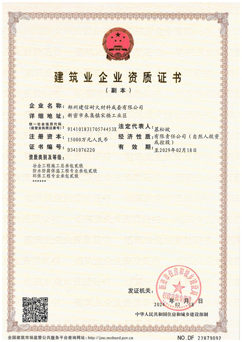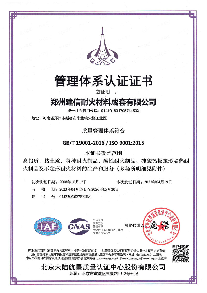 鄭州建信耐材先后參與起草國家建材及行業(yè)標(biāo)準(zhǔn):《高鋁抗剝落磚、系列耐堿磚及系列硅莫磚》、《水泥回轉(zhuǎn)窯協(xié)同處置用耐火材料抗侵蝕實(shí)驗(yàn)方法》、《耐火材料及砌筑使用規(guī)程》和《石灰窯砌筑技術(shù)條件》。公司近年來先后榮獲“國家科技型企業(yè)”、“高新技術(shù)企業(yè)”、“河南省綠色工廠”“河南省綠色發(fā)展先進(jìn)型企業(yè)”“環(huán)??冃級(jí)企業(yè)”、鄭州市“專精特新企業(yè)”“市長質(zhì)量獎(jiǎng)”等殊榮。